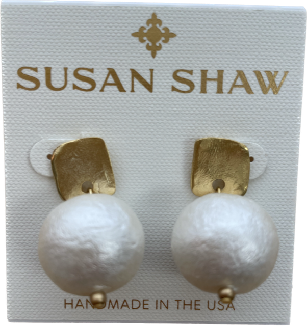 Gold Posts with Cotton Pearl Earrings