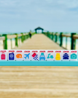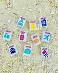 1 Green Zipper Tassel 1 Small Tile Grab Bag in a fun and colorful luggage pattern 4 Painted Light Blue Mini Racks, 10" in length each 2 colorful dice (14mm) 1 Infographic Quick Start Guide 160 Tiles: 36 Dots, 36 Bams, 36 Cracks, 12 Dragons, 16 Winds, 8 Flowers, 10 Jokers- all in the TRAVEL theme, 6 Blanks. Scalloped-Edge
